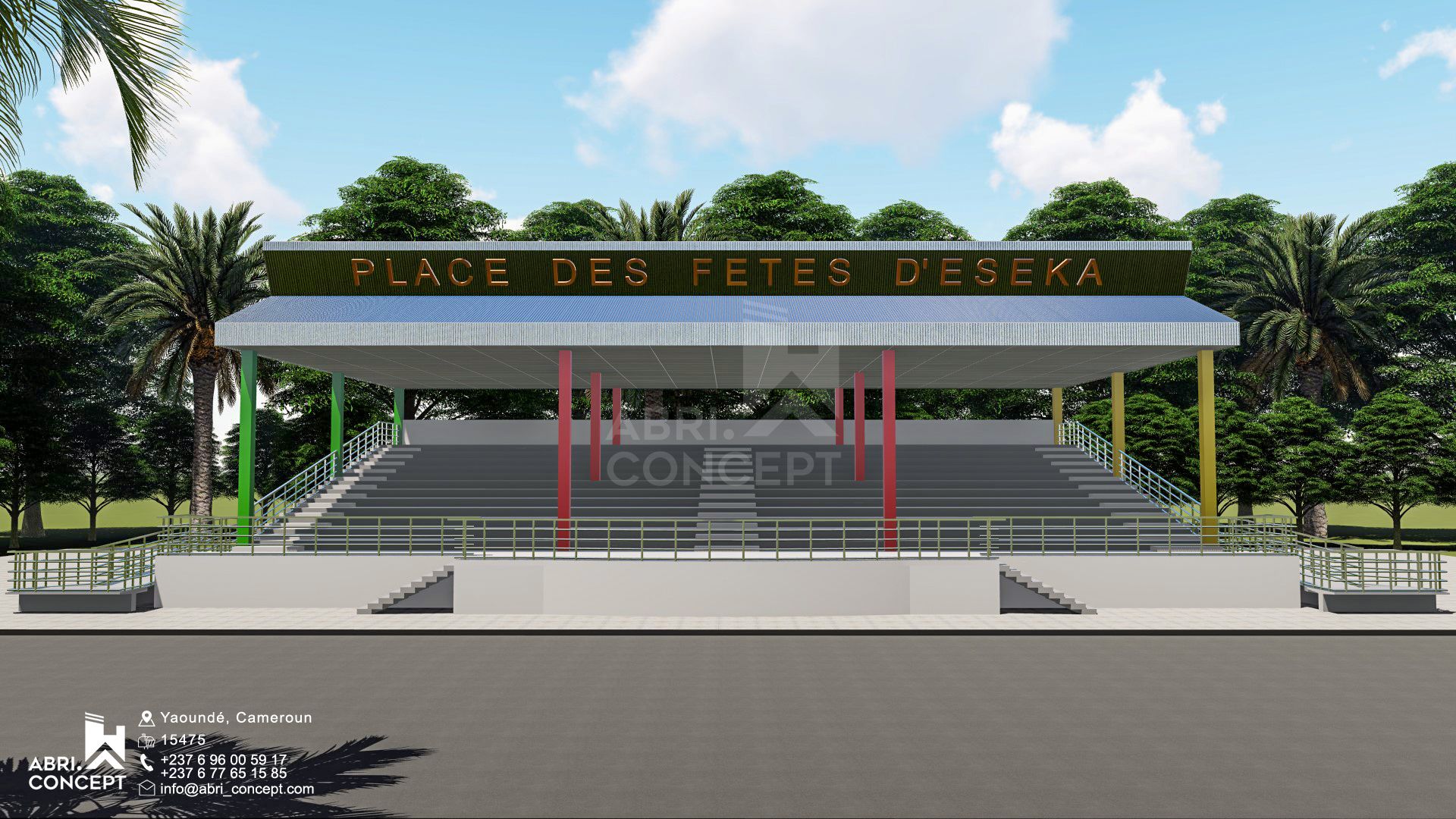 Espace multifonctionnel conçu pour animer le cœur de la ville d’Eseka, cette place de fêtes allie convivialité, esthétique et innovation.